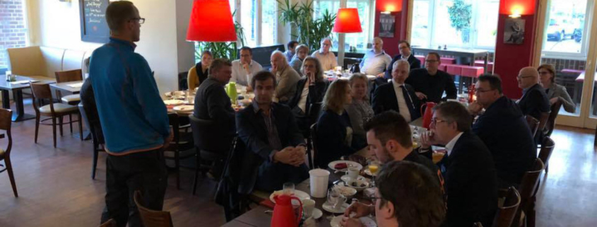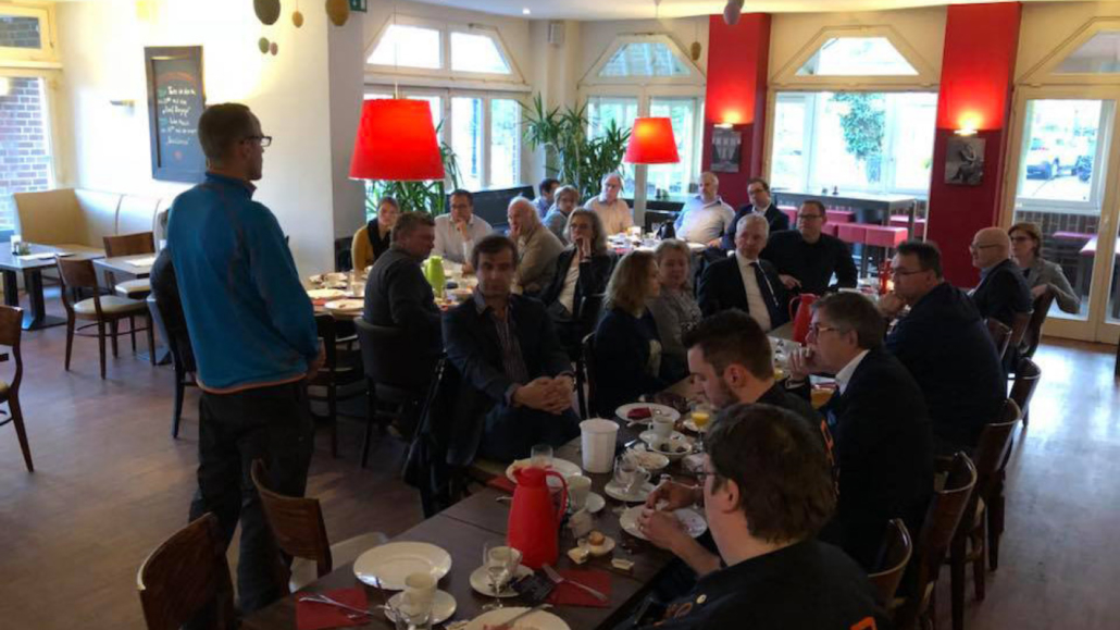 Um 6:30 Uhr – mit Sonnenaufgang – ging es zum Unternehmerfrühstück ins Café-Bar-Restaurant Auszeit, mitten im historischen Ortskern von Nottuln. Zahlreiche Unternehmer nutzten aus allen Branchen, bei Kaffee und leckeren Brötchen, die Gelegenheit zum Informationsaustausch und zum Netzwerken! Jeder nutzte die Chance sein Unternehmen in einem Kurzportrait vorzustellen und vielleicht auch dem ein oder anderen mit seinen Produkten oder Dienstleistungen bekannt zu machen.